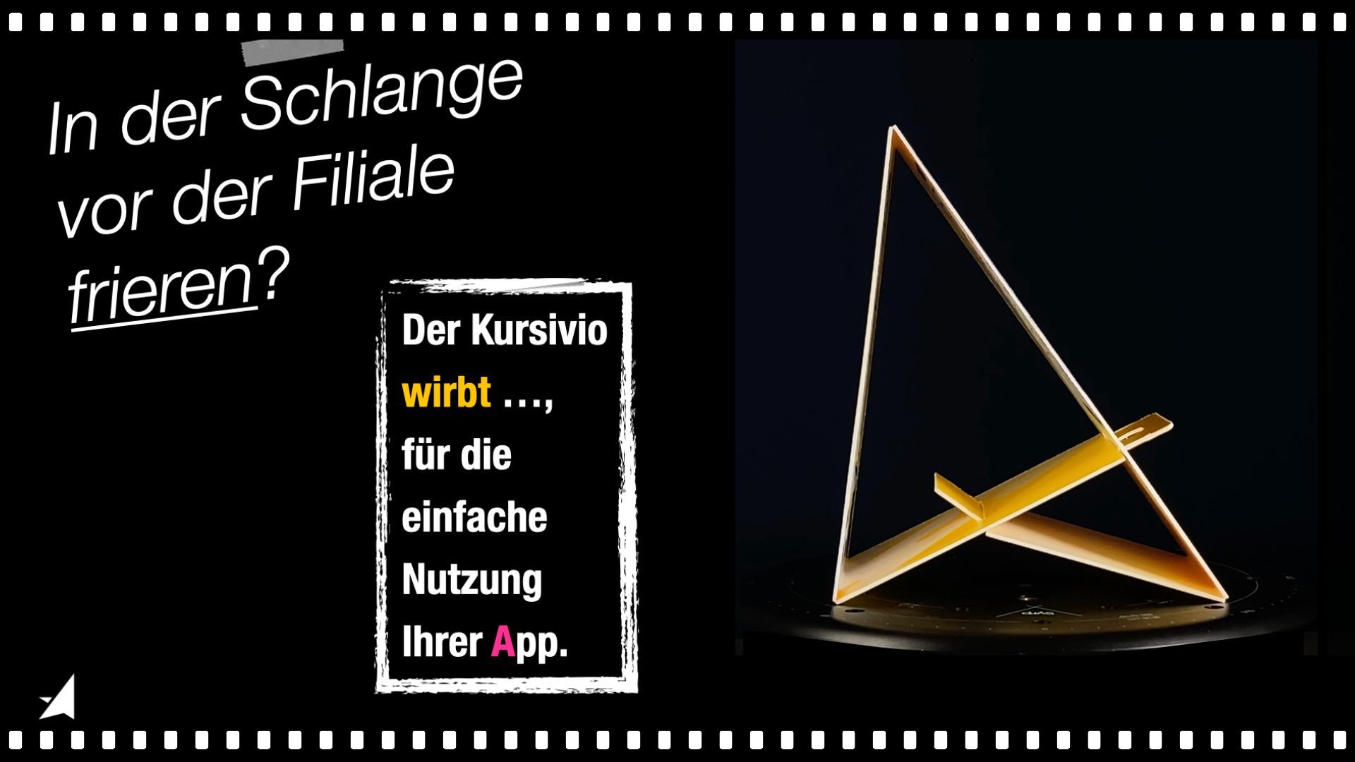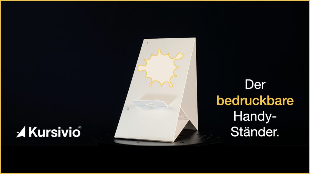 • Der nutzenstiftende Handy-Ständer Kursivio, den Ihre Kunden überall auf den Tisch stellen.